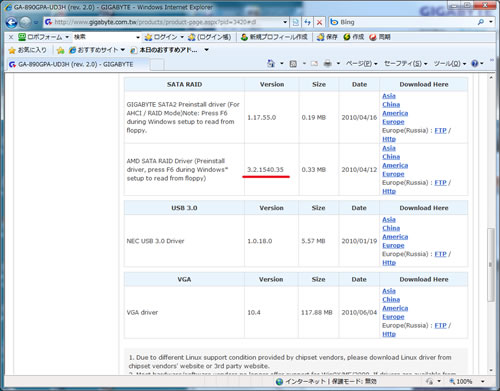 詳細はこちら・・・ ただ、以下の構成では、単純に相性問題が出てしまったという可能性は否定できません(´・ω・`) なんたって、OSのファイルコピー中によるブルースクリーン発生率がほぼ100%とという、脅威の確立orz <構成> 【CPU】AMD AthlonⅡ X2 260u 【M/B】Gigabyte GA-890GPA-UD3H Rev2 【メモリ】CFD W3U1333HQ-2G ショップによる確認では、CPUおよびマザーには特に問題は見受けられないということから、もうメモリしかないだろうと… そして、3号機のメモリ(Corsair CMX8GX3M4A1333C9)を2枚刺して実験してみることにしました。 すると・・・ ファイルコピーは、一度のコピーエラーも発生せずに無事に通過。 でも再起動後に更なる悲劇が・・・ はい、ブルースクリーンです(´・ω・`) 今度は、メモリ系のエラーコードではなく、HDD系のエラーコード(0X0000007B)です。 ここで、一旦Raid1設定でのインストールを諦め、Raidを解除し、シングルでOSをインストールしてみることに。 すると・・・ これまた、見事にOSがインストールされました。 SB850チップセットのドライバが悪いのか、Raidコントローラーがダメなのか・・・ まだ微妙なところです(´・ω・`) 幸い、購入したマザーはGigabyte SATAチップセットによるRaid1も対応しているので、そっちでも試してみました。 これまた、見事にOSのインストールが完了w その後、各種ドライバのインストール、OSのアップデートも全て完了しましたっ(`・ω・´) でも、妙なところで完璧主義なため、SB850でのRaid1でOSインストールを試みてみますよb 今日、Gigabyteのサイトを見ていて気づいたのですが、海外サイトと日本サイトでダウンロード可能なドライバのバージョンが違う・・・ 海外サイト:3.2.1540.35 日本サイト:3.2.1540.24 これは一体どうゆうことなのだろう・・・ 今までは、海外サイトの方のバージョンをOSのディスクに統合してインストールしてました。 ん~、バージョンの違いでブルースクリーンだったら泣けますpq しかも新しいほうのドライバで・・・orz 念のために日本サイトの方のドライバを統合したインストールディスクを作成してみます(´・ω・`) 現在、メモリのテスト中なので、明日辺りにでも挑戦してみるのですよっ(`・ω・´) PR