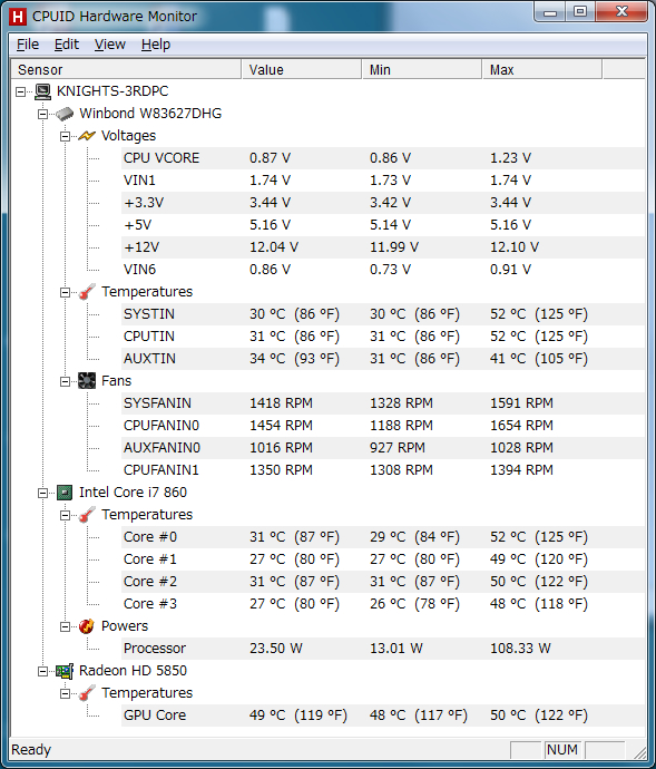 分かりづらいですが、横長なパッケージですw 見た目的には、すっきりとした感じですねw 【設置(斜め前から)】 もちろんファンはサンドイッチしていますよっ(`・ω・´) 【設置(斜め後ろ)】 【OCCT実行後】 CPU:core i7 860(3.05GHz 約9%OCした状態) 標準グリスをそのまま使用している割には、以外と冷えてます。 50℃切ってくれると嬉しかったのですが(´・ω・`) ただ、この水冷ユニット、ポンプの動作音が微妙に気になります。 (基本的にはファンの音でかき消されますがw) 取り付けの際、ホースが硬いので、設置が大変かもしれません。 また、説明書がかなり不親切な点が残念ですね… その製で、一回目(友人のPC構築時)は取り付けに物凄く苦労してしまいました(´・ω・`) 空冷ユニットと比べて、全体的に満足のいくものでしたっ☆ 【販売ショップ】 TSUKUMOさんのページはこちら → PR